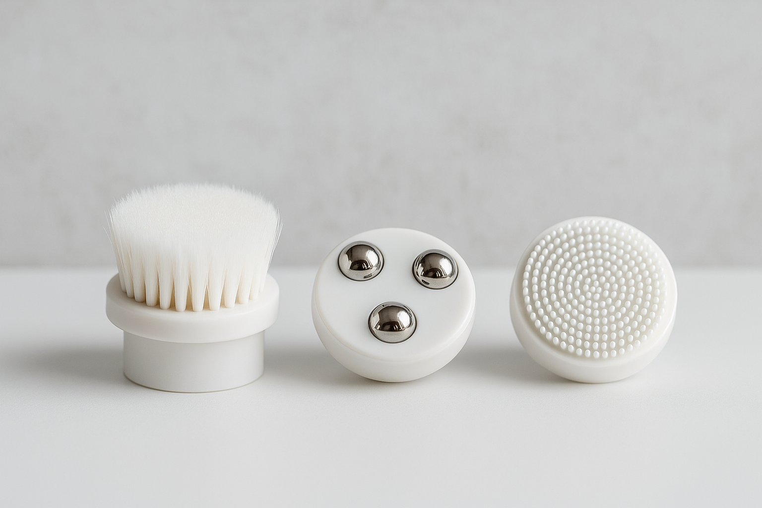 • 4 têtes interchangeables : pour un soin complet — nettoyage, exfoliation, massage et soin ciblé.
